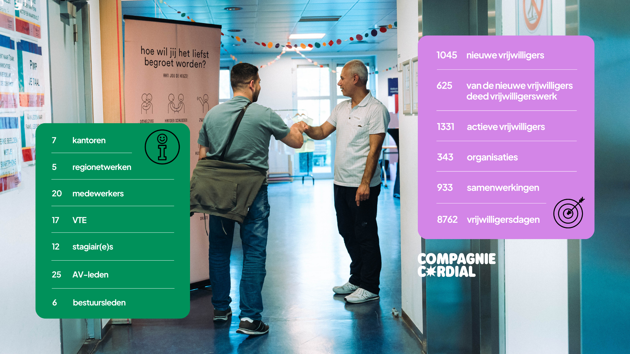 Ongeveer 1 op 3 blijft vrijwilligerswerk doen bij die organisatie, ook zonder tussenkomst van Compagnie Cordial.