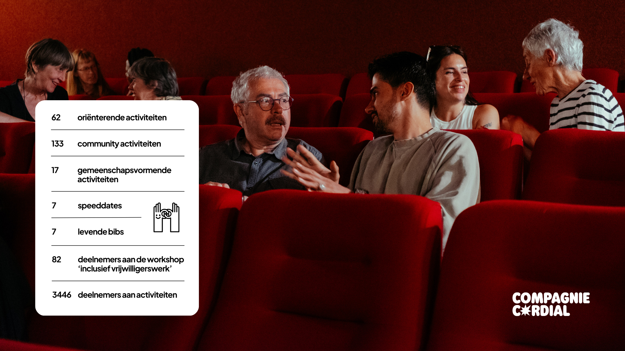 66,2% van de organisaties waar we mee samenwerken geeft aan dat het draagvlak voor inclusie binnen hun organisatie vergroot is dankzij de samenwerking met Compagnie Cordial.